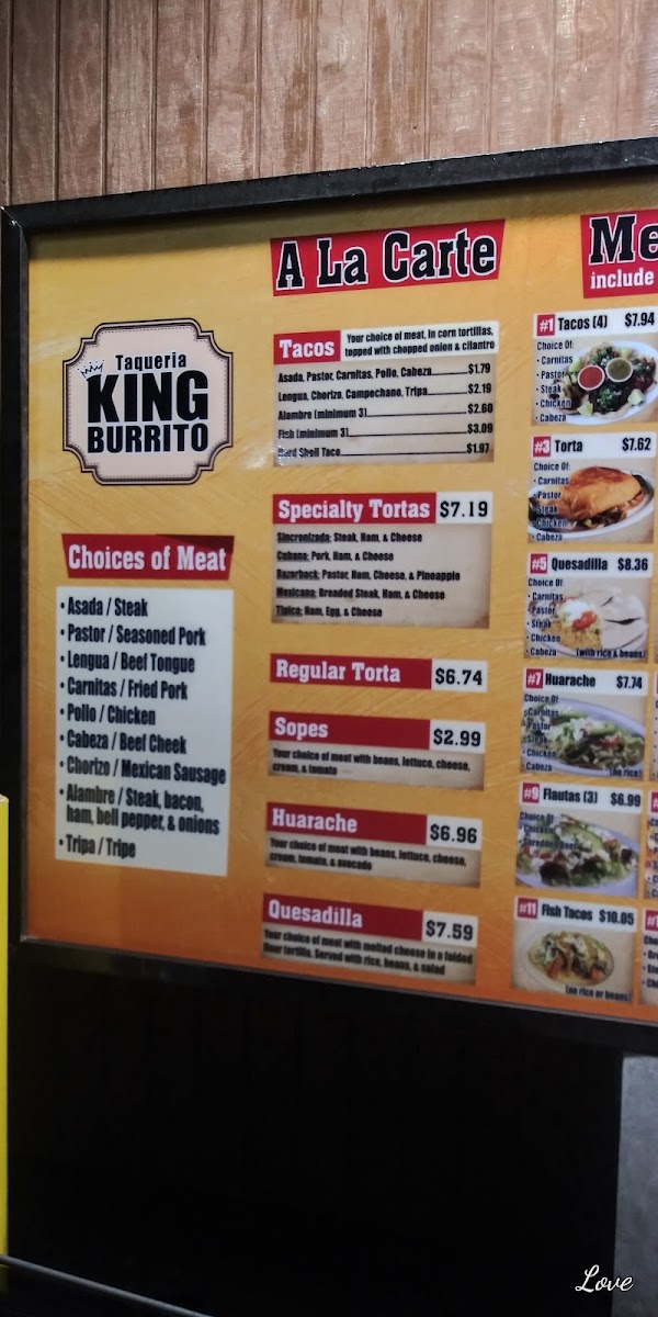 King Burrito Menu